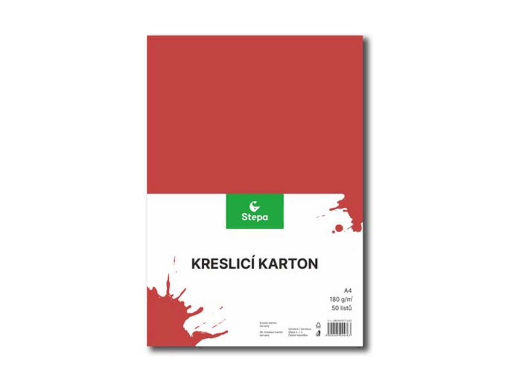 - Kvalitní kreslící karton, čtvrtka, v červené barvě s gramáží 180g/m2.