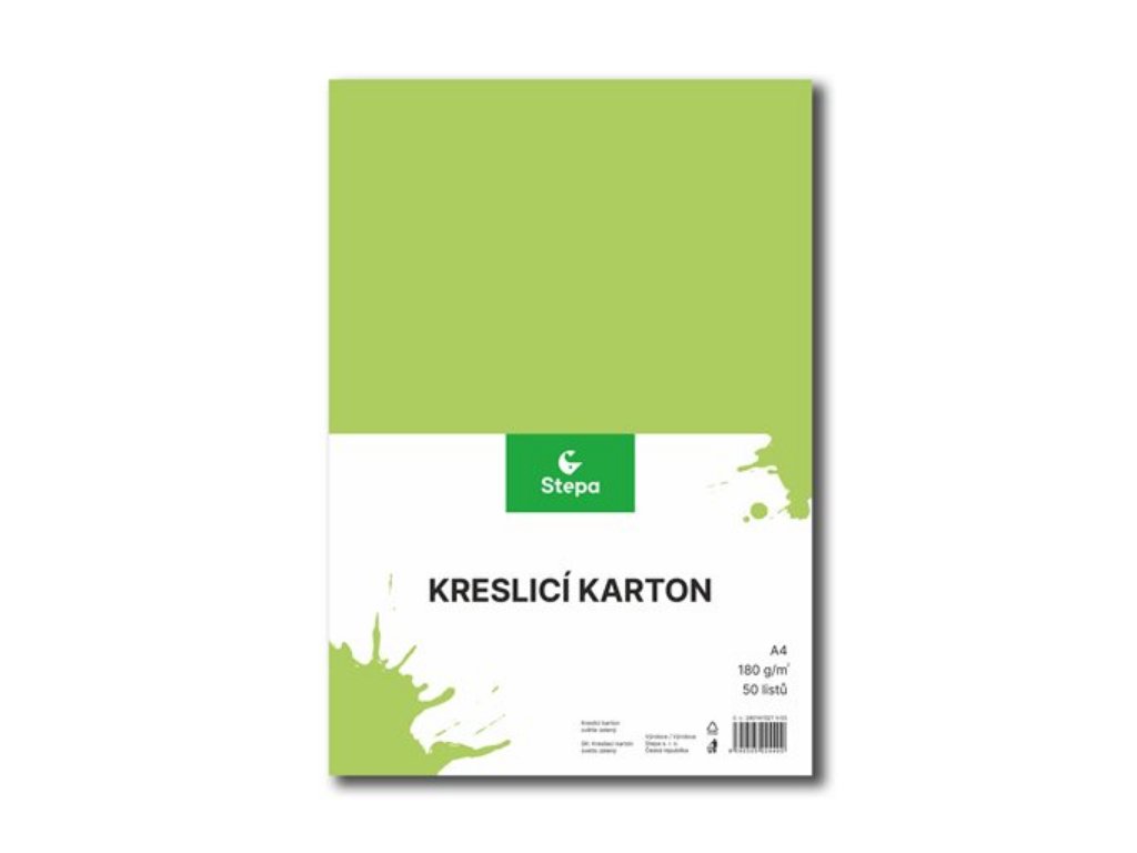 - Kvalitní kreslící karton, čtvrtka, v světle zelené barvě s gramáží 180g/m2.