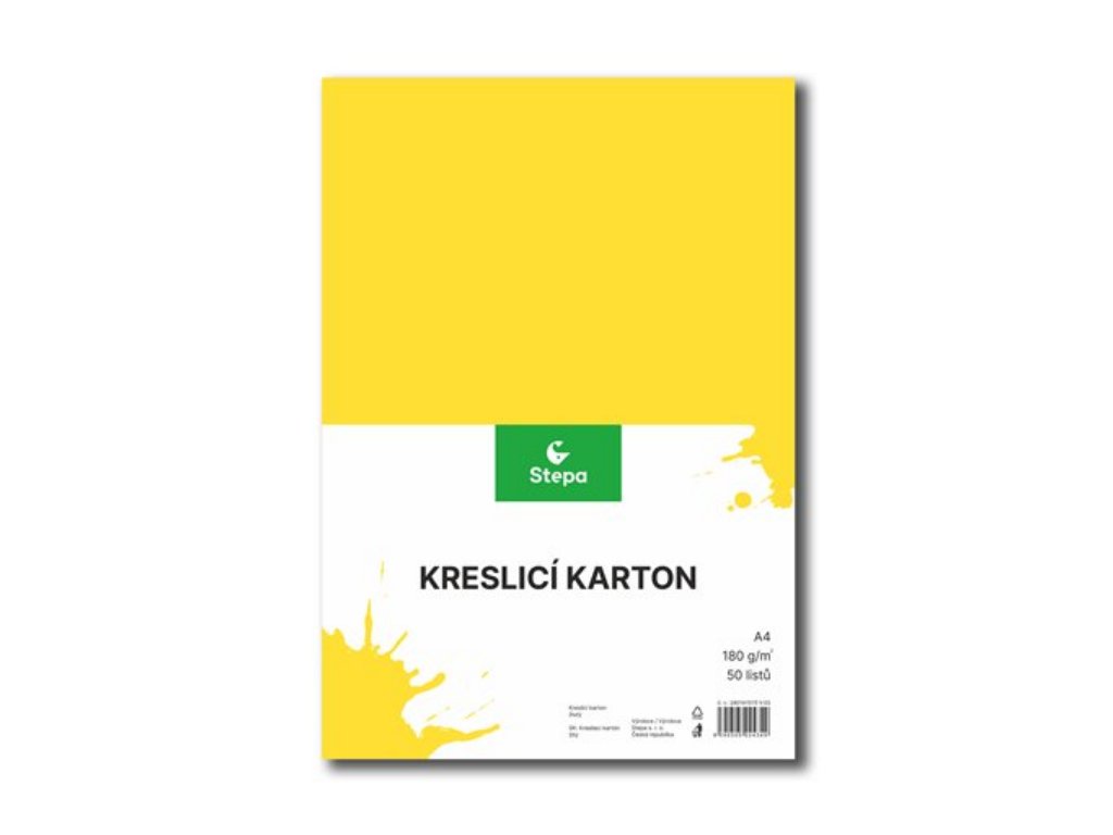 - Kvalitní kreslící karton, čtvrtka, v žluté barvě s gramáží 180g/m2.