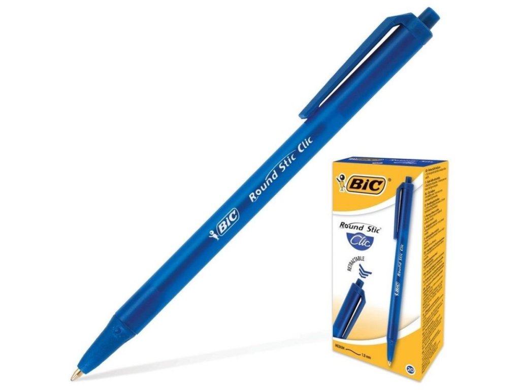Kuličkové pero BIC Round Stic Clic hrot 1 mm, mačkací modré
