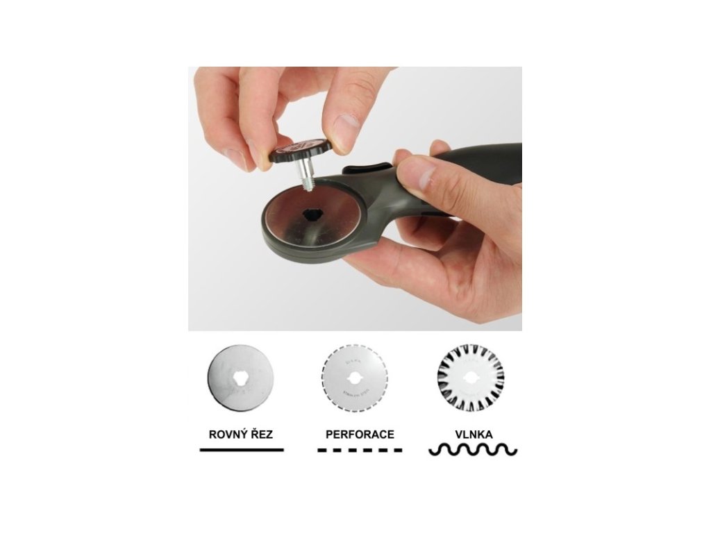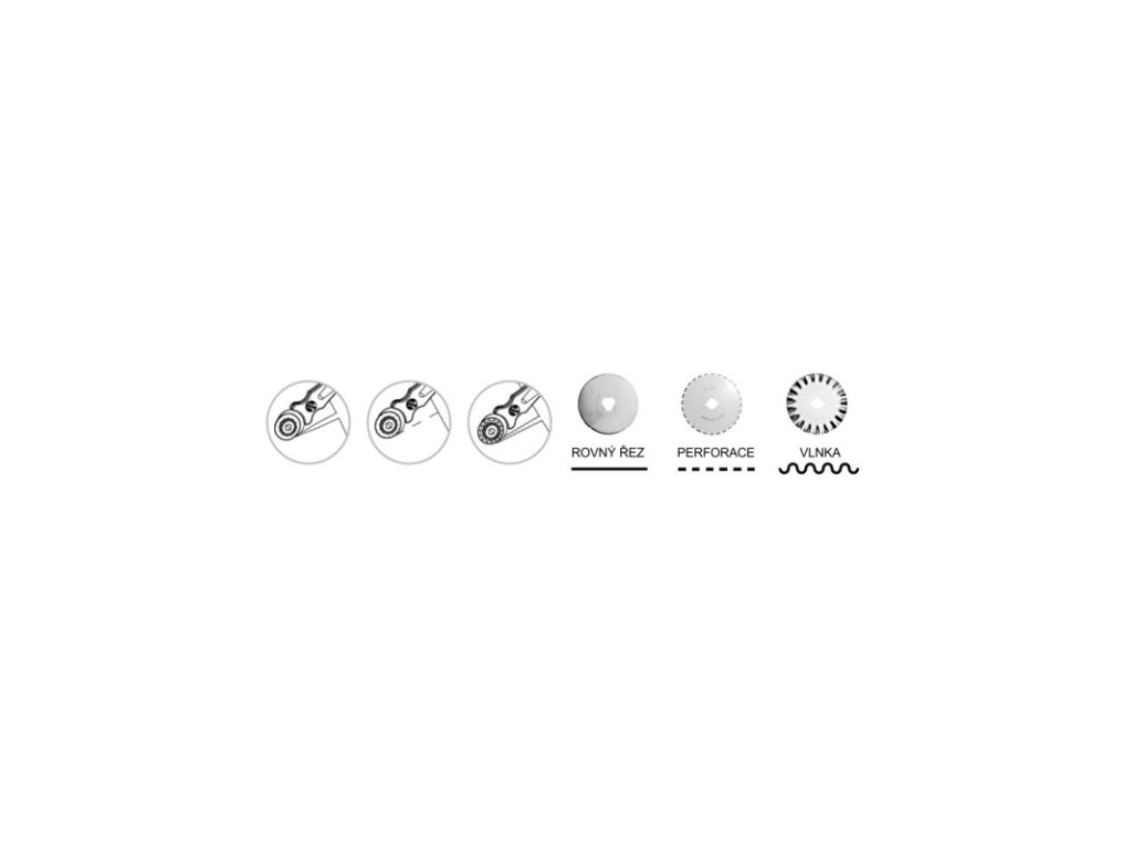 - možnost dokoupení výměnné sady : rovný nůž, vlnka, perforace