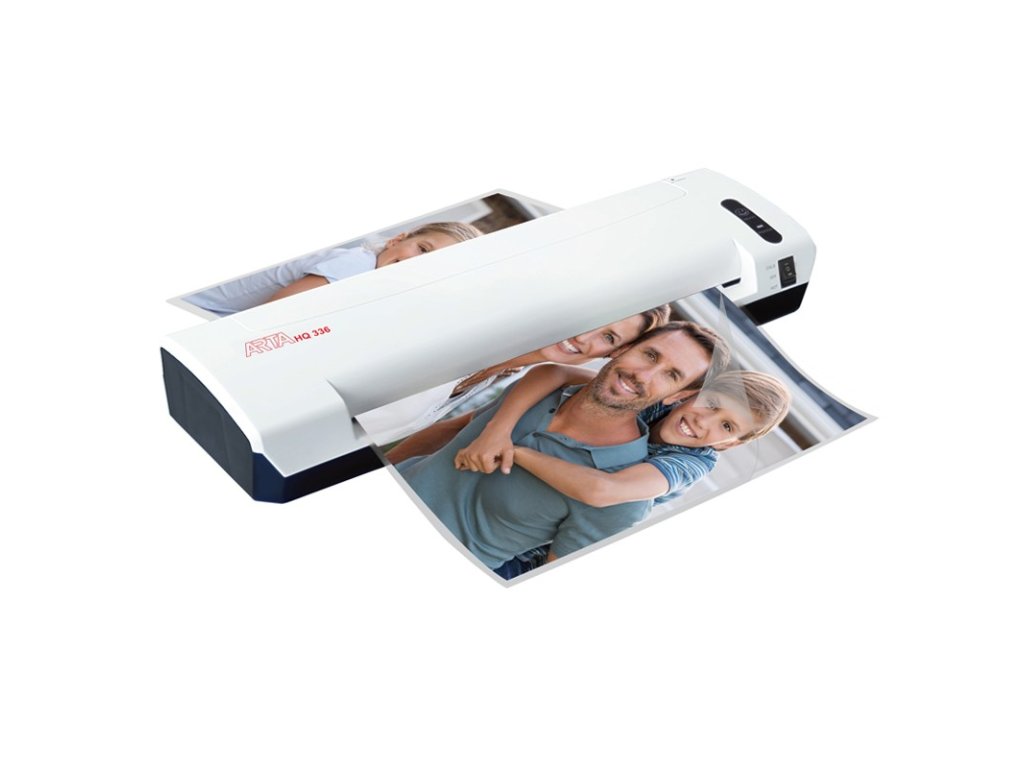 Kancelářský laminátor ARTA HQ 336 A3 s rychlým ohřevem do formátu A3 a integrovaným řezacím pravítkem a zaoblovačem. Vhodný pro laminování dokumentů v menších kancelářích nebo v domácnostech.