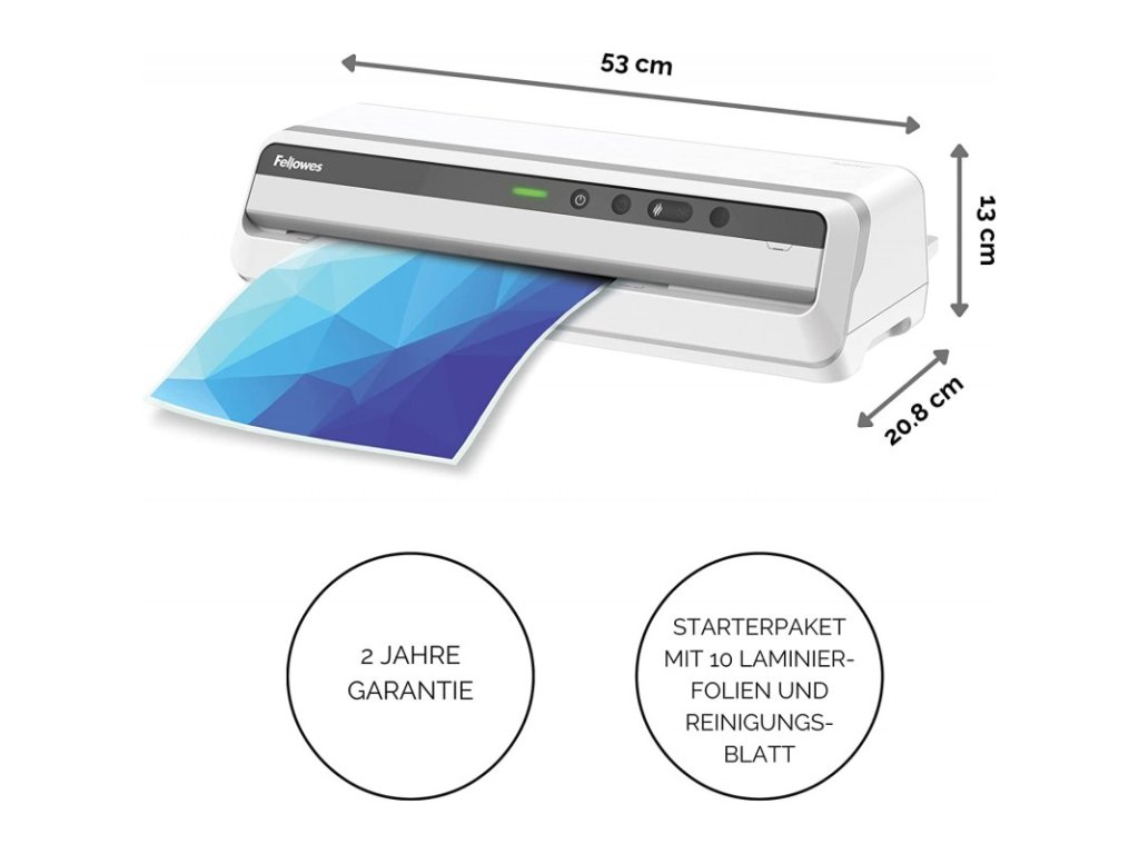Provozní HODNOTY stroje jsou NASTAVENY AUTOMATICKY po vložení laminovaného dokumentu do stroje. Světelná indikace připravenosti. Laminace za tepla inovovaným systémem výhřevu a vyspělá technologie 6-ti laminovacích válců zajistí prémiovou kvalitu výsledných dokumentů. Možnost přepnutí do režimu pro laminaci za studena. Vybaven zpětným chodem.