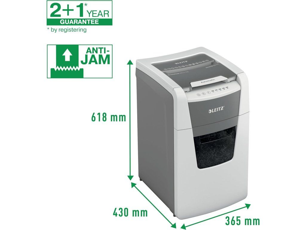 Leitz IQ Autofeed Office 150 skartovačka P5, mikro řez 2 × 15 mm, 150 listů, koš 44 l, bílá