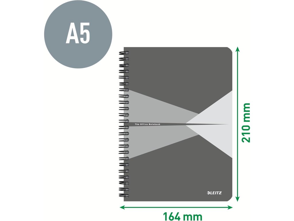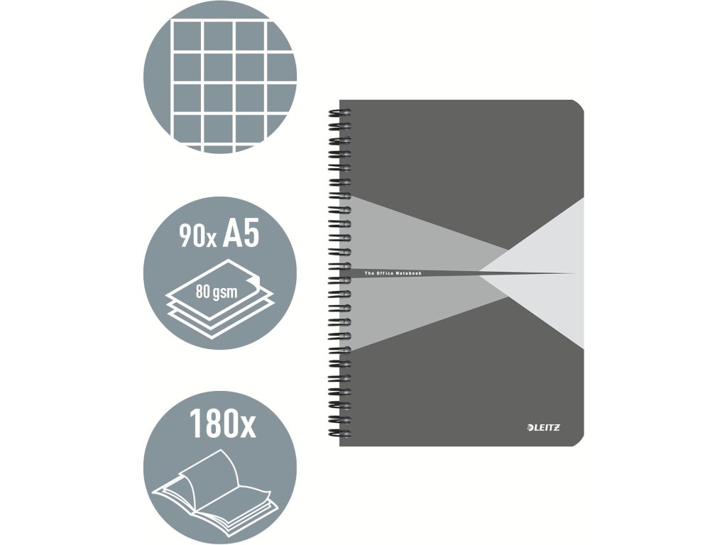 Leitz Office spirálový blok A5 čtverečkovaný, 90 listů, šedý