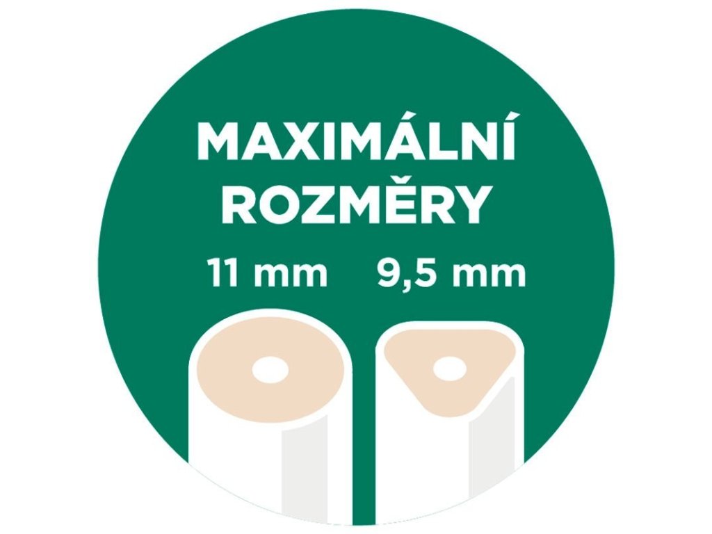 - kulaté tužky a pastelky do průměru 11 mm, trojhranné tužky a pastelky do průměru 9,5 mm