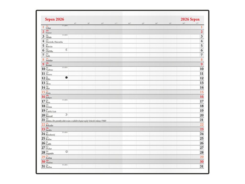 - Kalendárium: české měsíční jmenné kalendárium