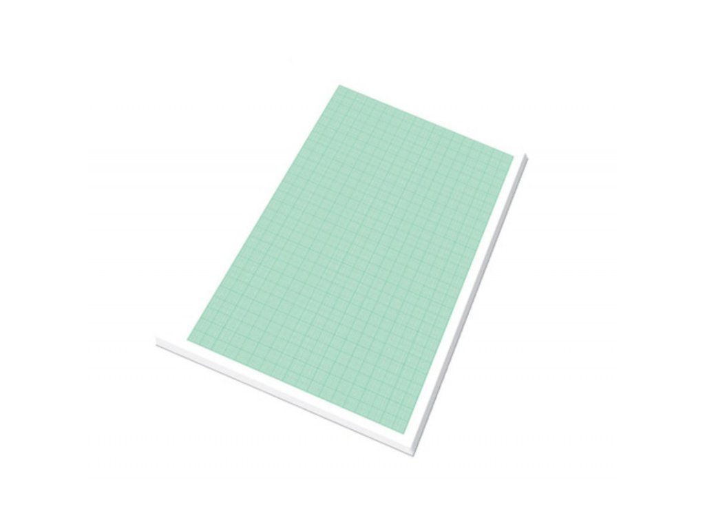 Papír s jednostranným zeleným potiskem milimetrovým rastrem s dělením po 1, 5 a 10 mm.