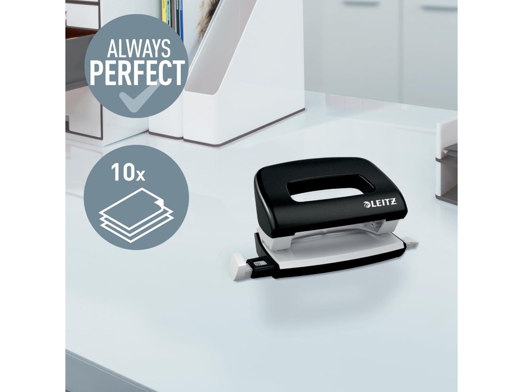 Mini děrovačka Leitz NeXXt 5060, kapacita 10 listů, černá