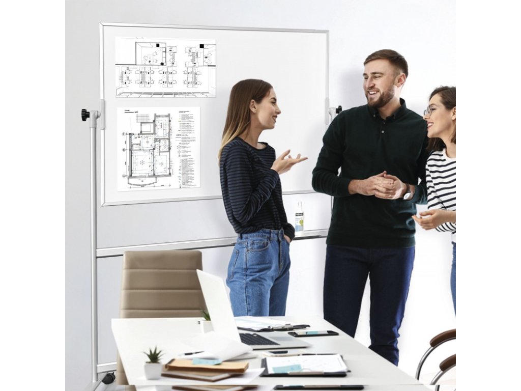 - Mobilní tabule SP optimal Magnetoplan s oboustranným bílým magnetickým povrchem.
