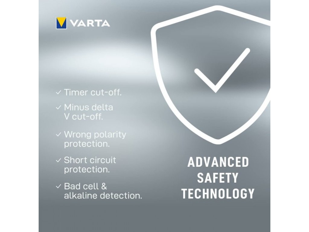 Společnost Varta je pak vzhledem k tradici značky, která se datuje až do roku 1887, a zkušenostem s bateriovými články garancí nejen spolehlivosti, ale také maximálně bezpečného provozu. Tomu výrazně napomáhají funkce, jako je detekce vadného článku/alkalické baterie nebo ochrana proti zkratu a přepólování.