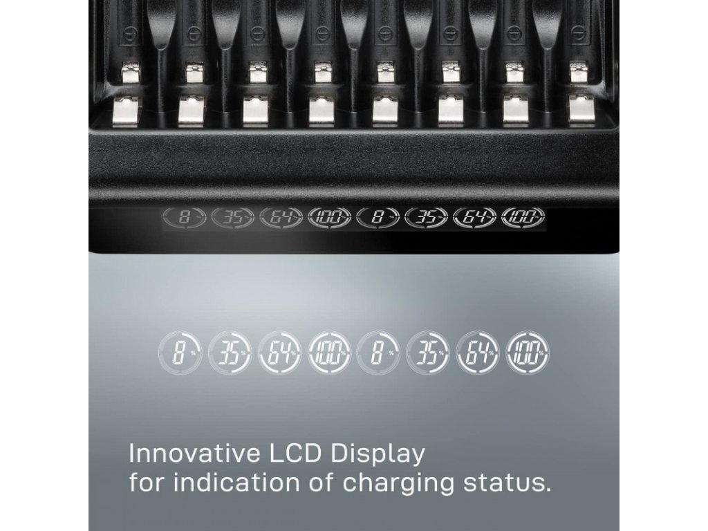 - Šikovný LCD displej pro dokonalý přehled o nabití každé baterie