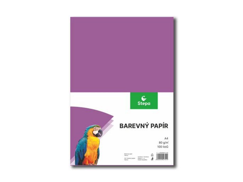 - Formát A4 (210 x 297 mm). 100 listů v balení. Plošná hmotnost 80g/m2. Barva fialová
