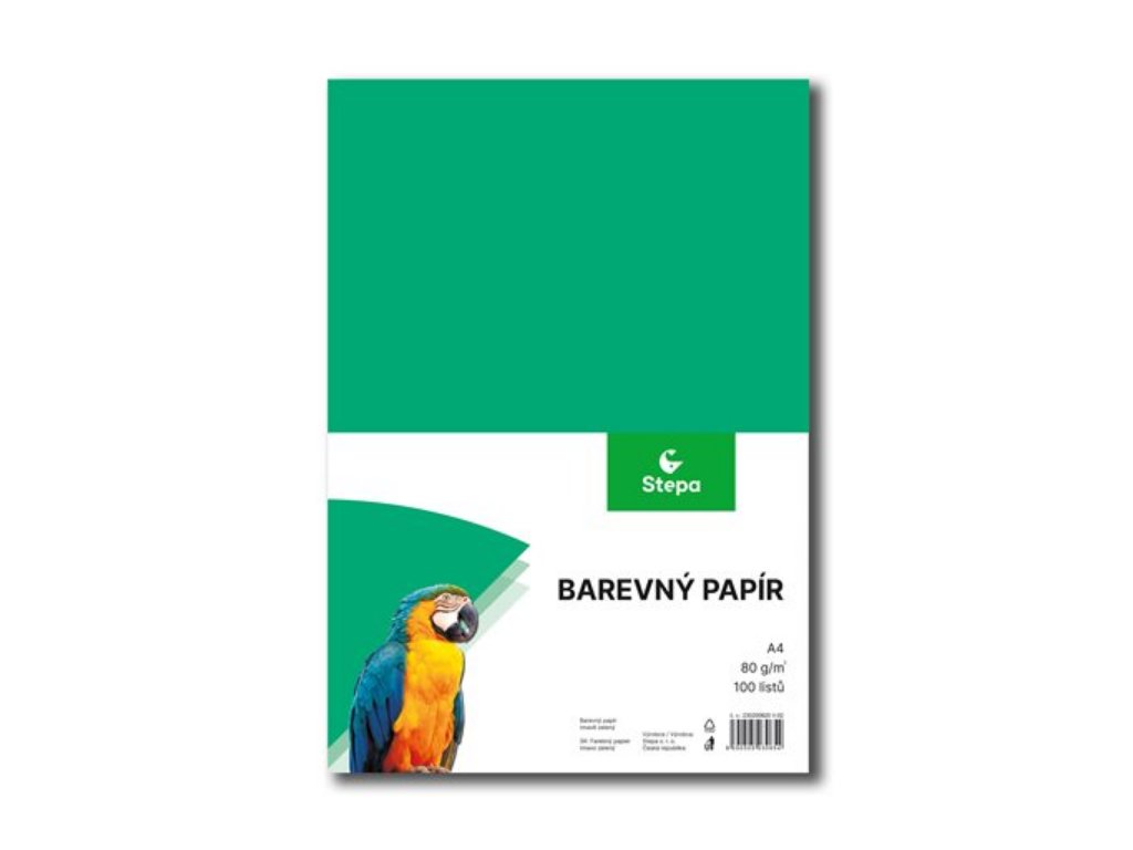 - Formát A4 (210 x 297 mm). 100 listů v balení. Plošná hmotnost 80g/m2. Barva tmavě zelená.