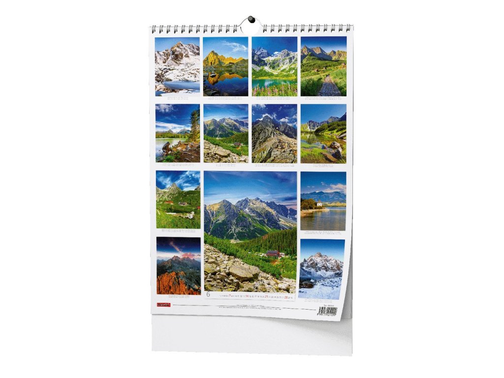 Objevte kouzlo Tater s nástěnným kalendářem 2026. Každý měsíc vás čeká jiná scenérie – dramatické horské štíty zalité sluncem, klidná hladina Liptovské Mary, zasněžené Morskie Oko nebo horská plesa a stezky. Fotografie zachycují Tatry v různých ročních obdobích. Kalendář má přehledné měsíční kalendárium a kroužkovou vazbu pro snadné zavěšení.