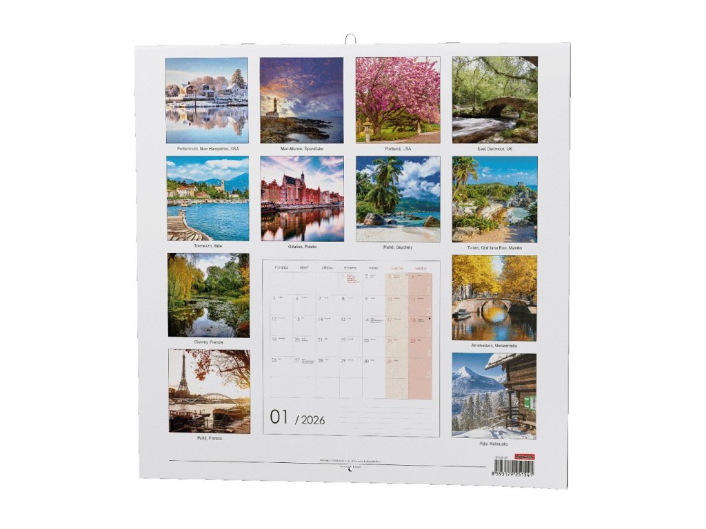 NÁSTĚNNÝ KALENDÁŘ POZNÁMKOVÝ - ROMANTICKÁ MÍSTA 2026 - BNL6 - 28,5 × 28,5 cm