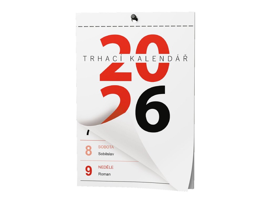 - Trhací nástěnný kalendář s týdenním kalendáriem a většími písmeny a čísly, ve formátu A6.