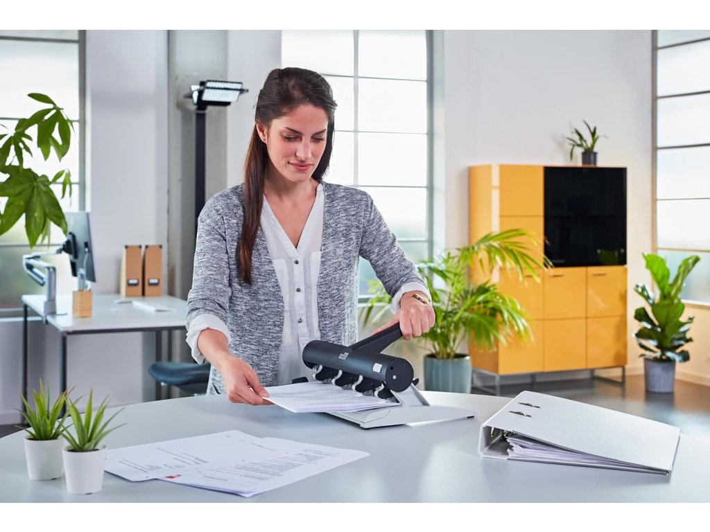 Ideální volba pro uživatele, kteří potřebují flexibilní a přesné děrování – například pro diáře, plánovače, šanony různých typů nebo nestandardní vazbu dokumentů.