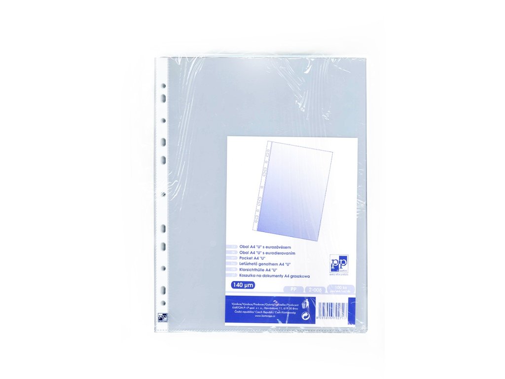 Obal A4 U s eurozávěsem lesklý čirý, extra silný PP 140 mic