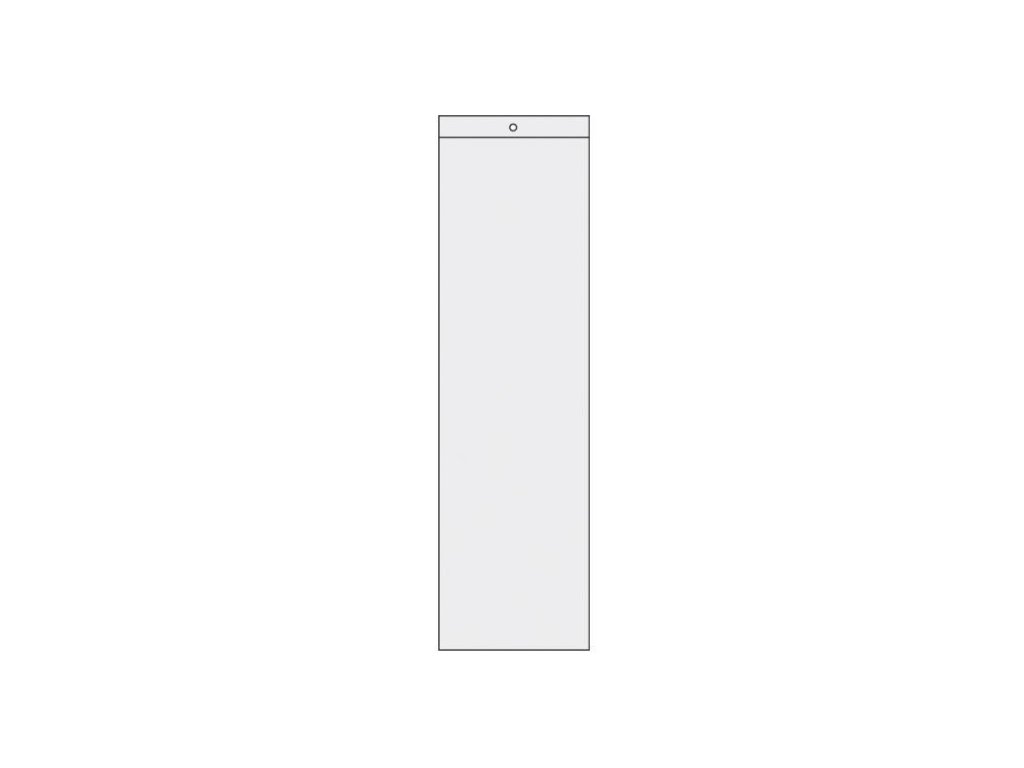 - Průhledné hladké PVC 120 mic, klopa s otvorem pro zavěšení.