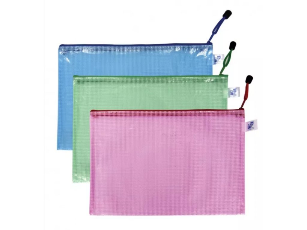 - Průhledné, barevné obálky z pevného PVC 300 mic a uzávěrem na plastový zip v barvě obálky.