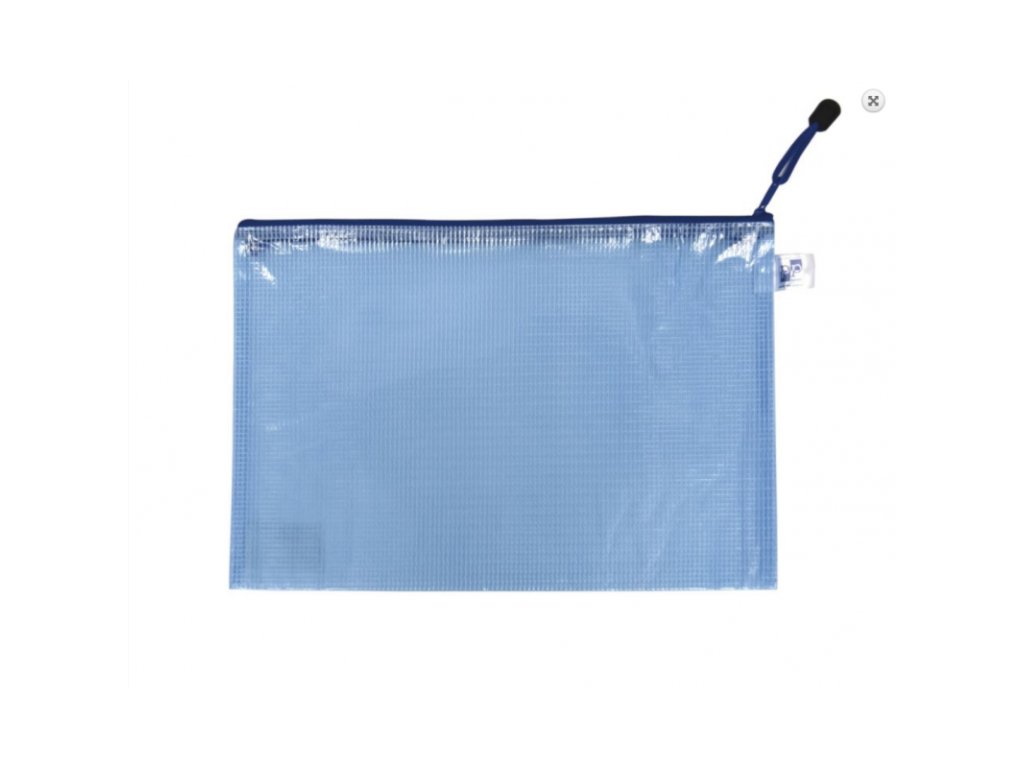 Obálka se zipem na dokumenty, síťovaná A4 modrá, odolná proti roztržení
