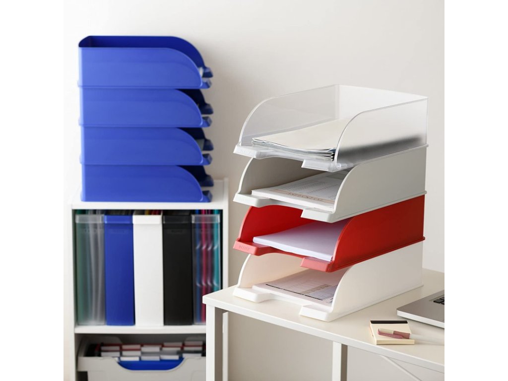 - Možnost vytvoření modulárního systému stohováním s dalšími odkladači Jumbo i s odkladači Standard, Slim nebo vysouvacími odkladači Leitz Plus