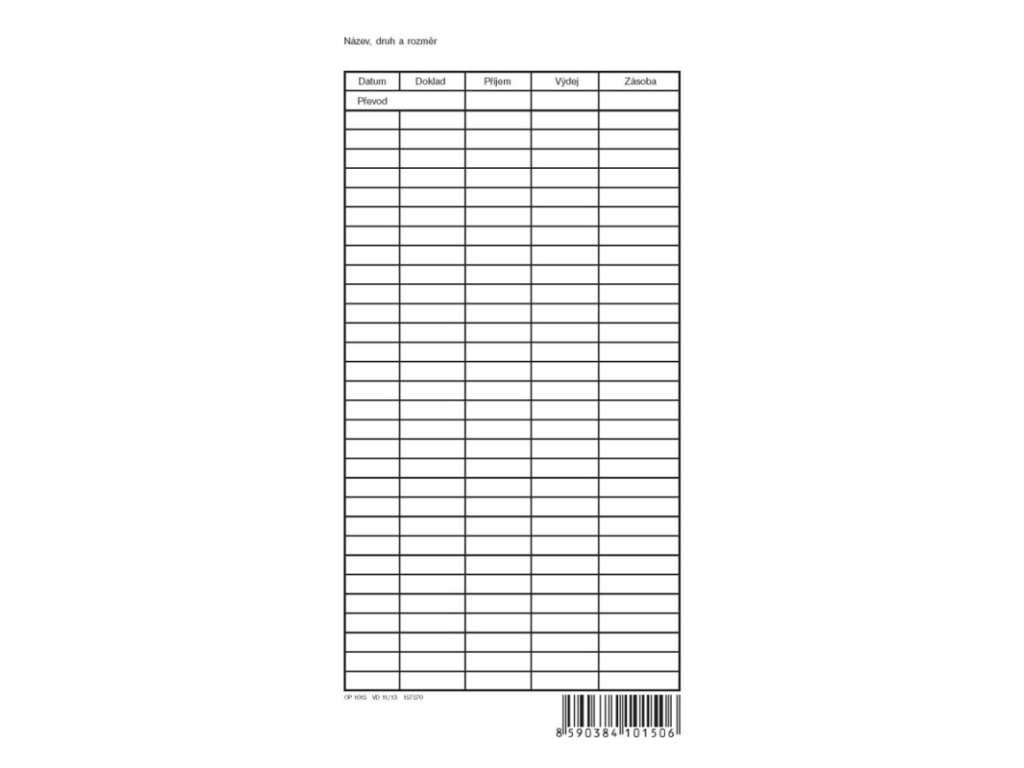 Skladová karta OPTYS 1015 je praktická a přehledná pomůcka určená pro evidenci skladových zásob v menších i větších provozech. Umožňuje zaznamenávat příjmy, výdeje a aktuální stav skladovaných položek. Jedná se o volný list z pevného kartonu o gramáži 170 g, který je odolný, stabilní a vhodný pro dlouhodobé používání. Formulář je nepropisovací, oboustranný a kompaktních rozměrů 10 × 21 cm, díky čemuž se snadno ukládá do pořadačů, skladových boxů či zakázkových spisů.