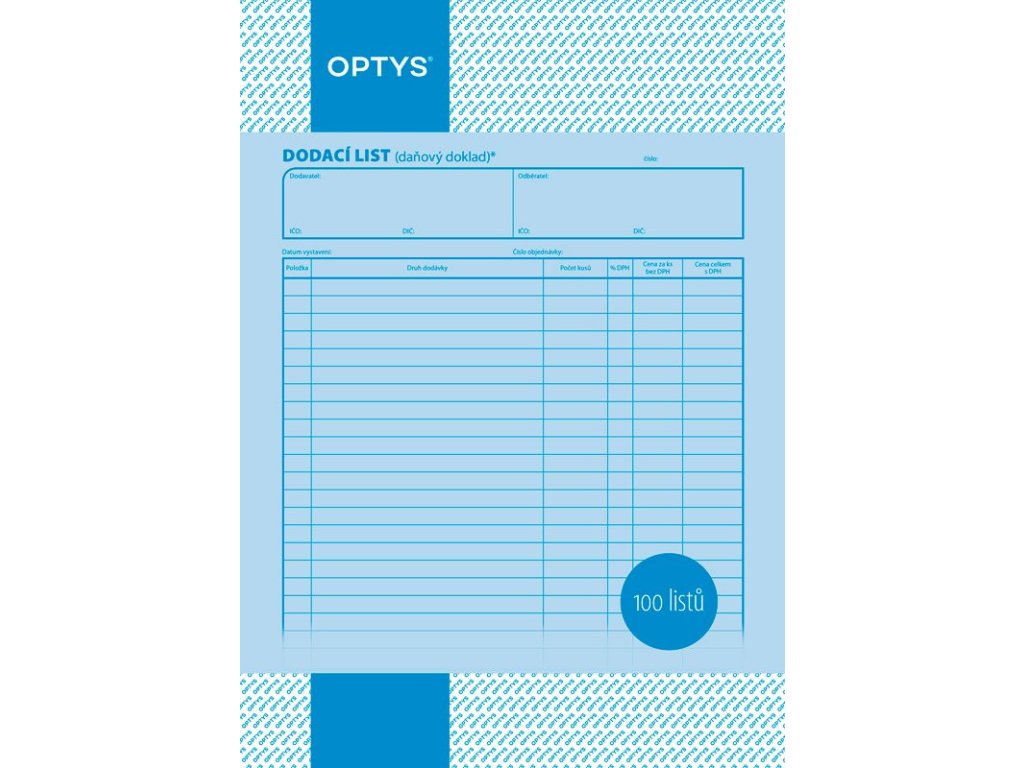 OPTYS 1043, Dodací list A4, 100 listů