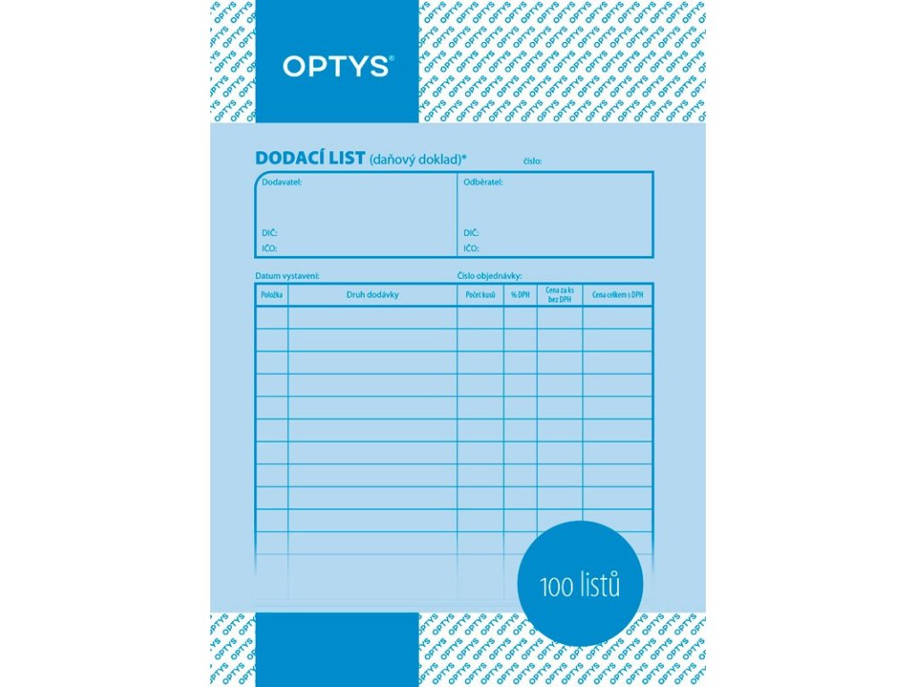 Dodací list – daňový doklad slouží k evidenci dodávek zboží a poskytovaných služeb. Umožňuje zaznamenat údaje o dodavateli, odběrateli, množství, cenách i datu dodání. Tiskopis splňuje všechny požadavky zákona o DPH, což zajišťuje jeho plnou použitelnost pro účetní a daňové účely. Díky perforaci a zakládacímu děrování lze jednotlivé listy snadno odtrhnout a archivovat.