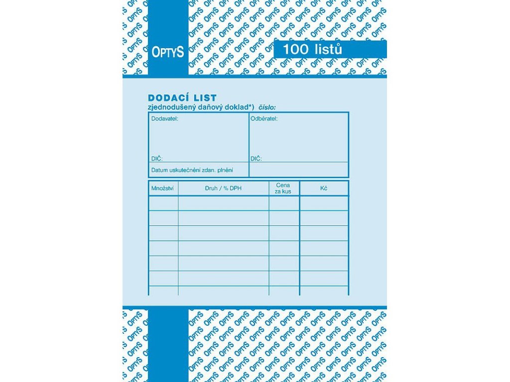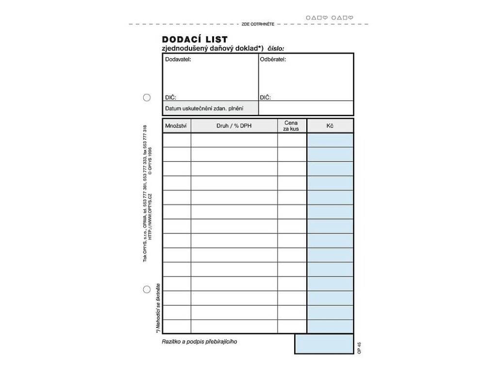 - obsahuje 100 listů odtržitelných perforací, se zakládacím děrováním