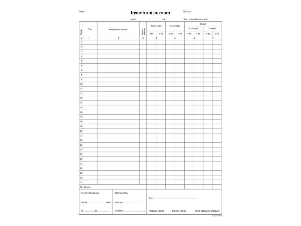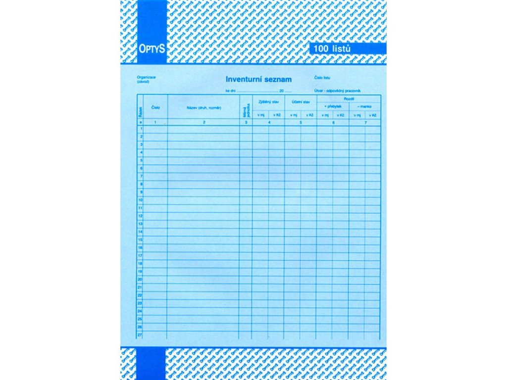OPTYS 1049, Inventurní seznam A4, 100 listů