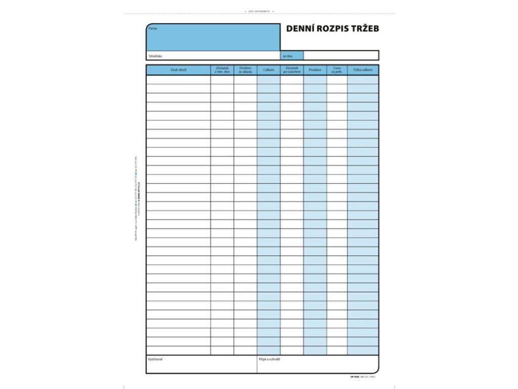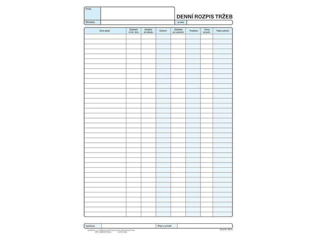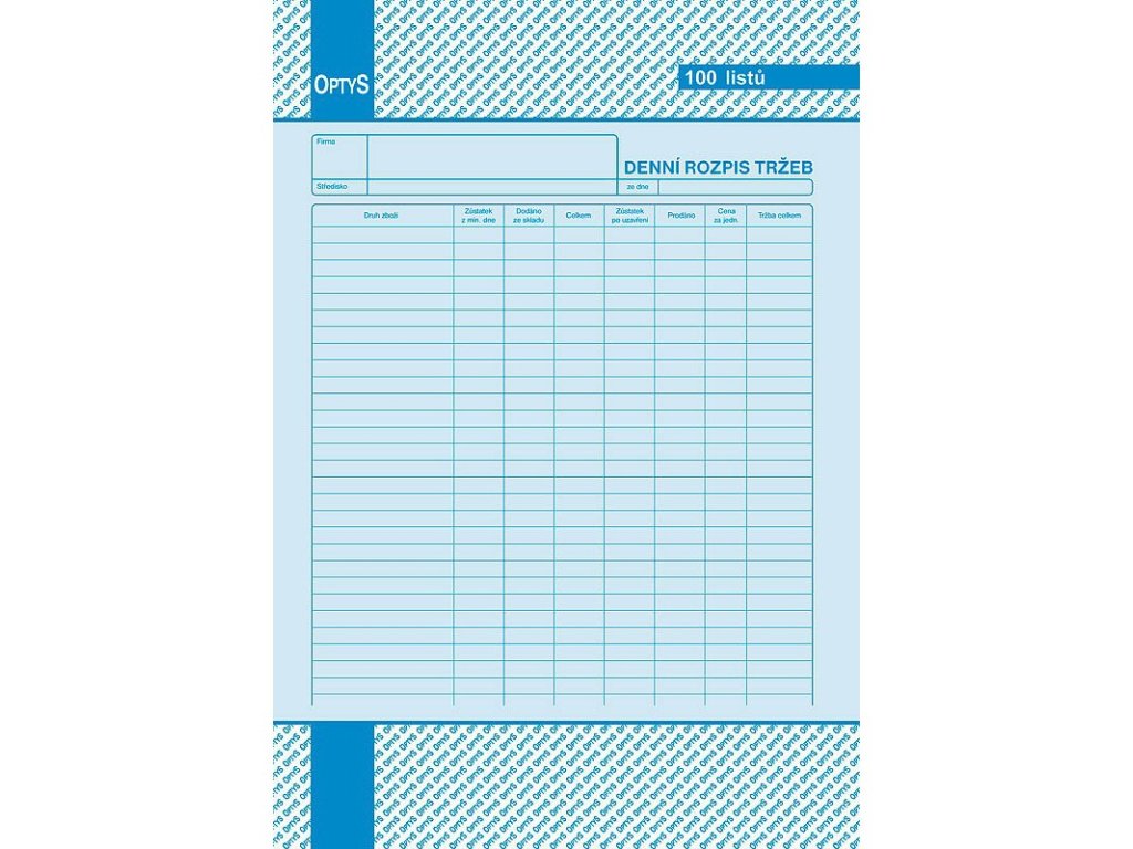 OPTYS 1054, Denní rozpis tržby A4, 100 listů