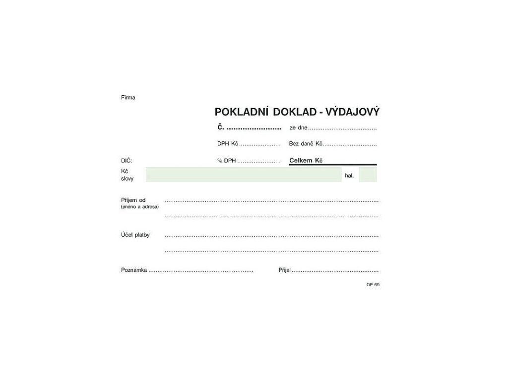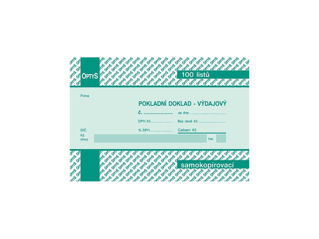 OPTYS 1069, Výdajový doklad s DPH A6, jednoduchý, samopropisovací, 100 listů