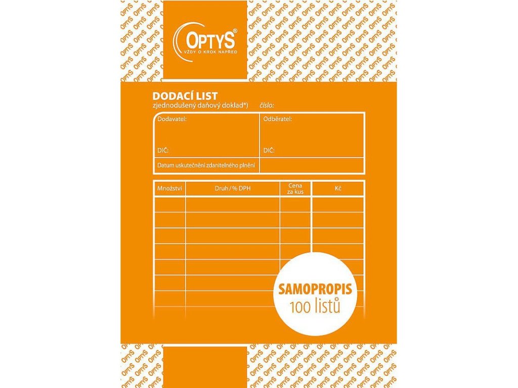 Kategorie: | Optys přímopropisující tiskopisy |