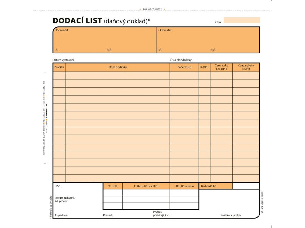 Dodací list – daňový doklad slouží k evidenci dodání zboží nebo služeb a patří mezi základní dokumenty používané ve skladech, obchodech, výrobě i logistice. Tiskopis splňuje všechny platné požadavky zákona o DPH, takže jej lze bez obav používat pro účetní a daňové účely.