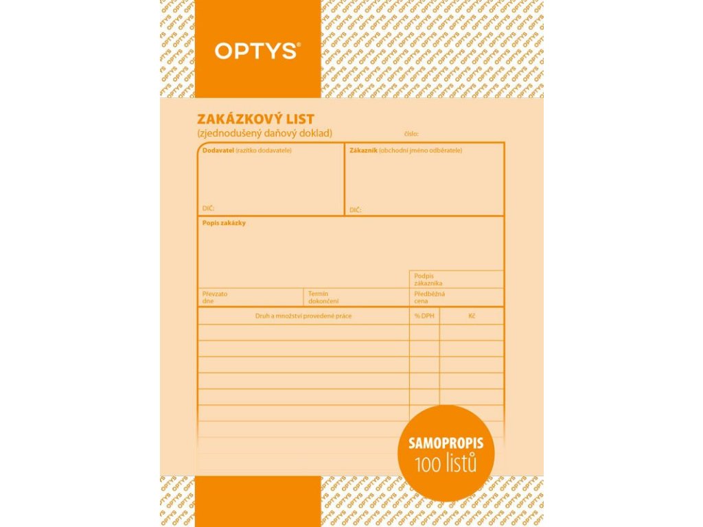 OPTYS 1085, Zakázkový list A5, samopropisovací, 100 listů