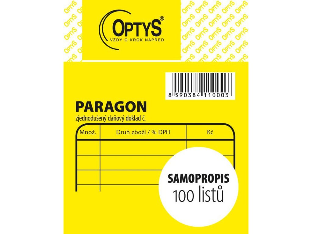 OPTYS 1100, Obchodní paragon, samopropisovací, 7,5 x 9,5 cm
