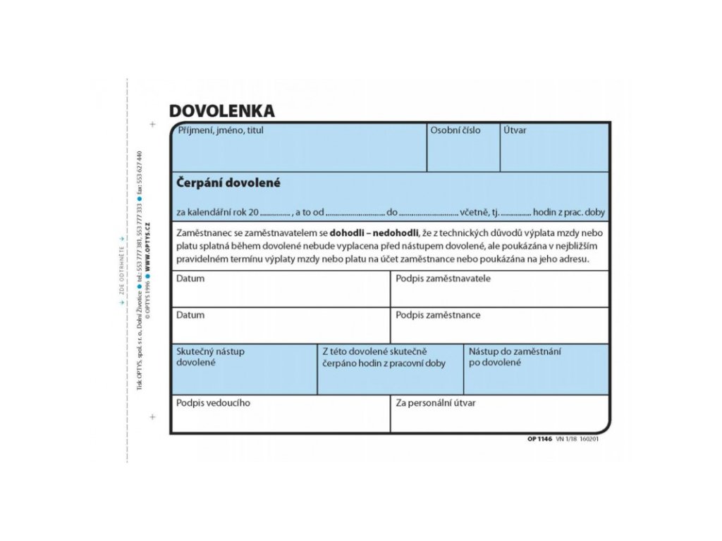 - obsahuje 100 listů odtržitelných perforací, se zakládacím děrováním