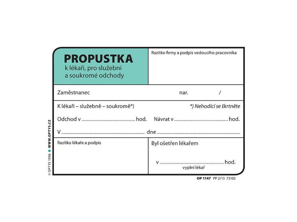 - k lékaři, pro služební i soukromé odchody z pracoviště