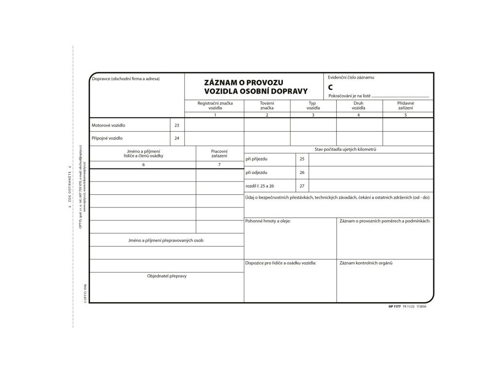 OPTYS 1177, Záznam o provozu vozidla osobní dopravy A5, číslovaný, 100 listů