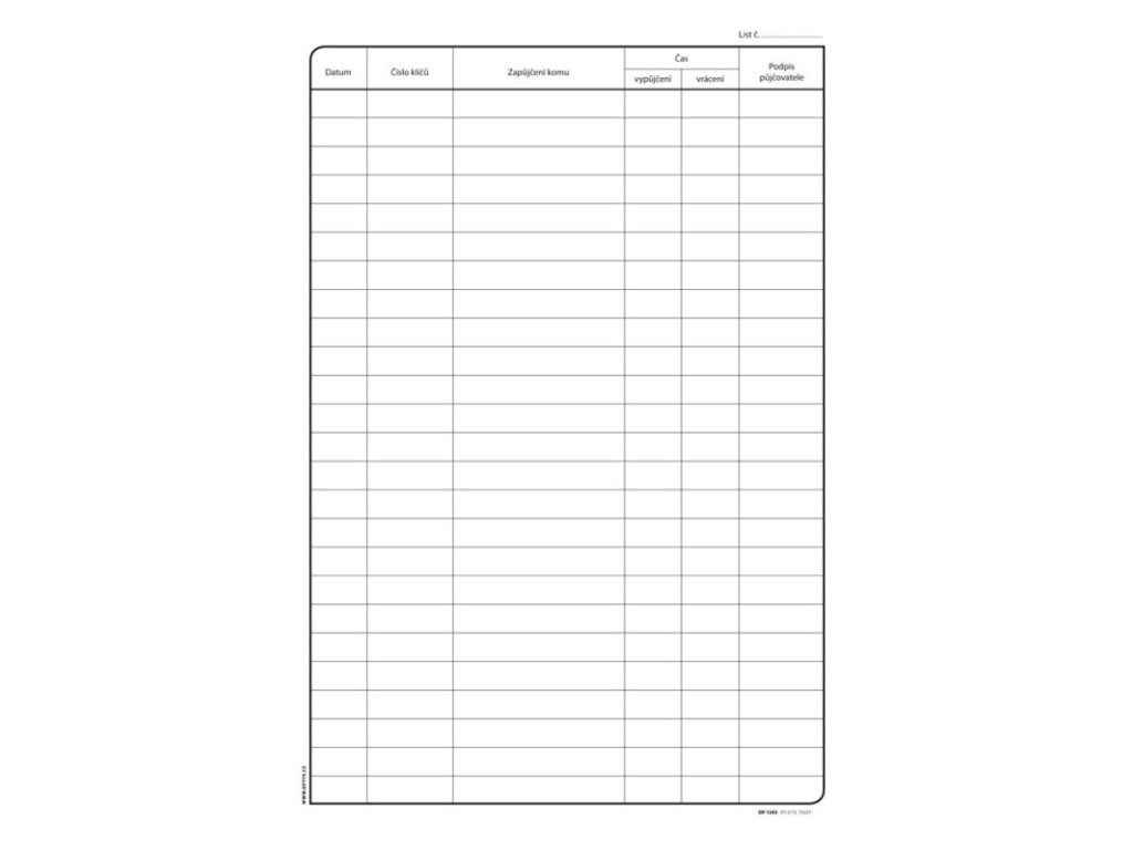OPTYS 1243, Kniha evidence klíčů A4, 96 listů