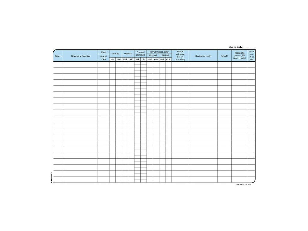 OPTYS 1260, Kniha příchodů a odchodů A4, 64 listů