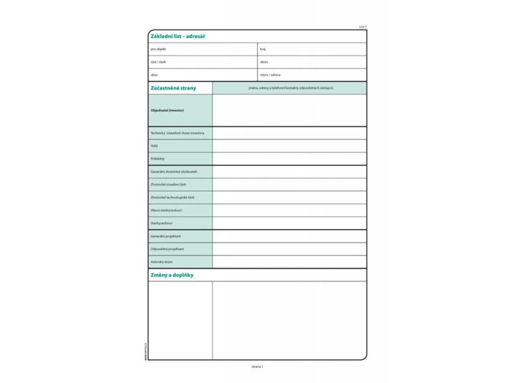- slouží k dennímu vedení záznamů o všech důležitých skutečnostech od odevzdání staveniště, zahájení až po ukončení stavby