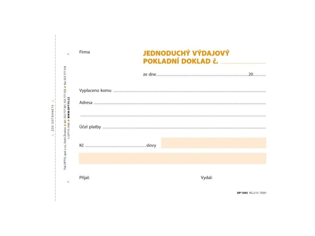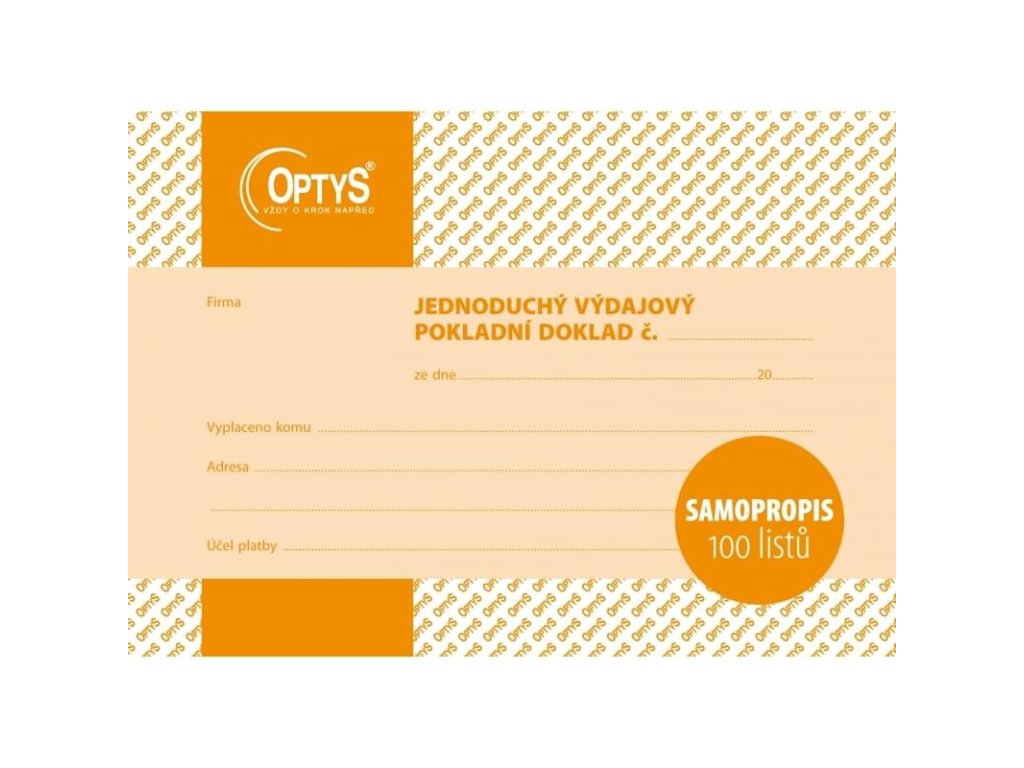 OPTYS 1303, Výdajový doklad A6, jednoduchý, samopropisovací, 100 listů