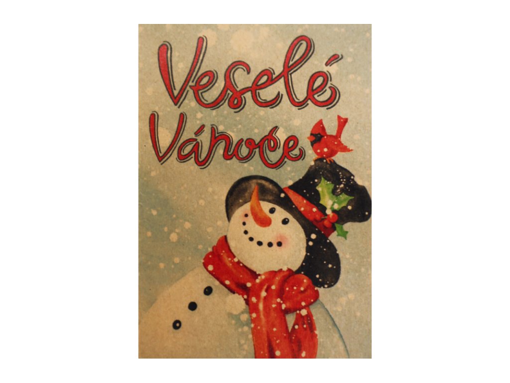 Originální přáníčko - Veselé Vánoce - Motiv Sněhulák - Kraftový papír