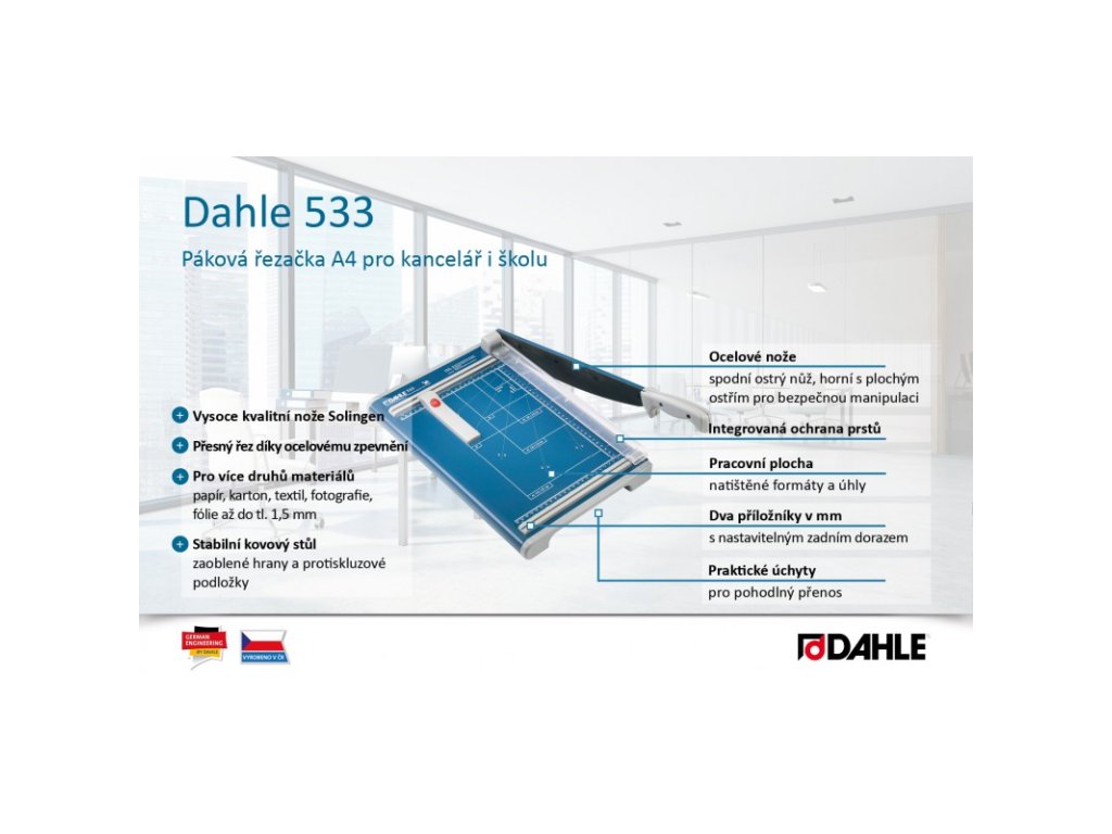 Páková řezačka DAHLE 533, délka řezu 340 mm, pro formáty A4