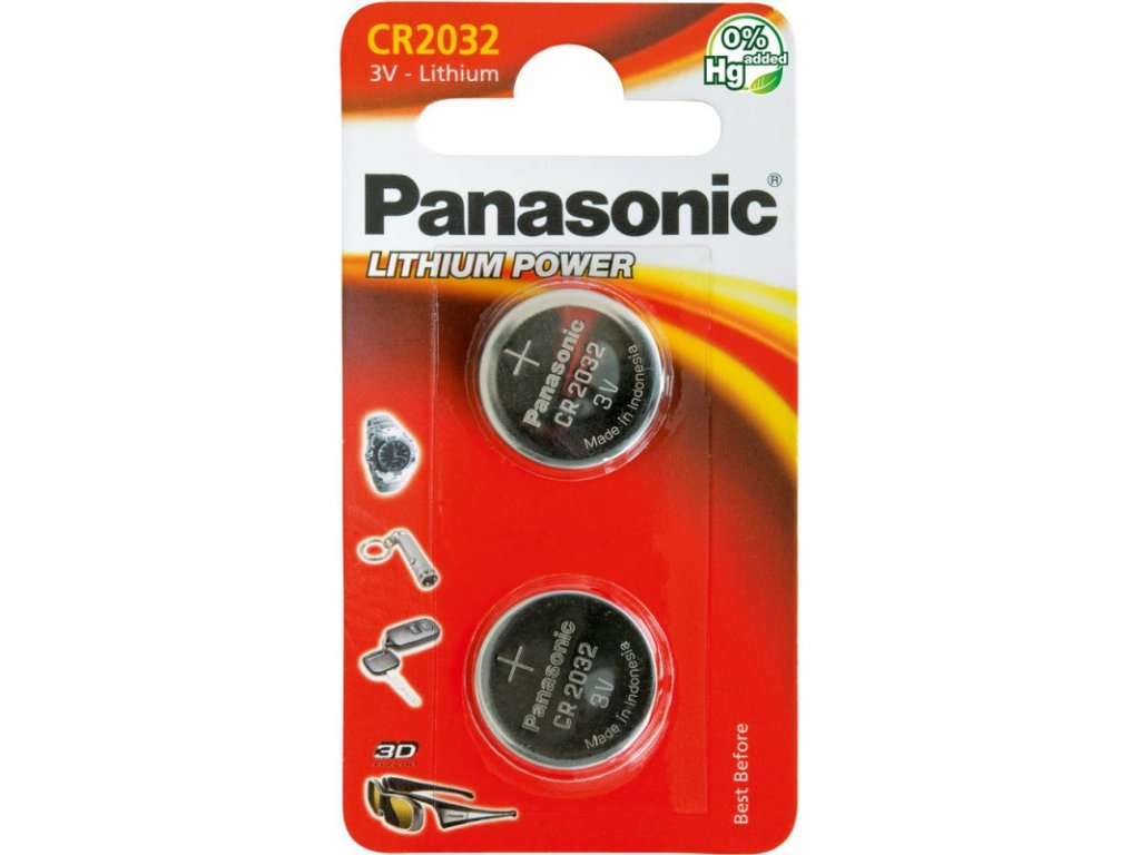 Panasonic Lithium Power CR2032, knoflíková baterie 3V, 225mAh, lithiová, 2ks