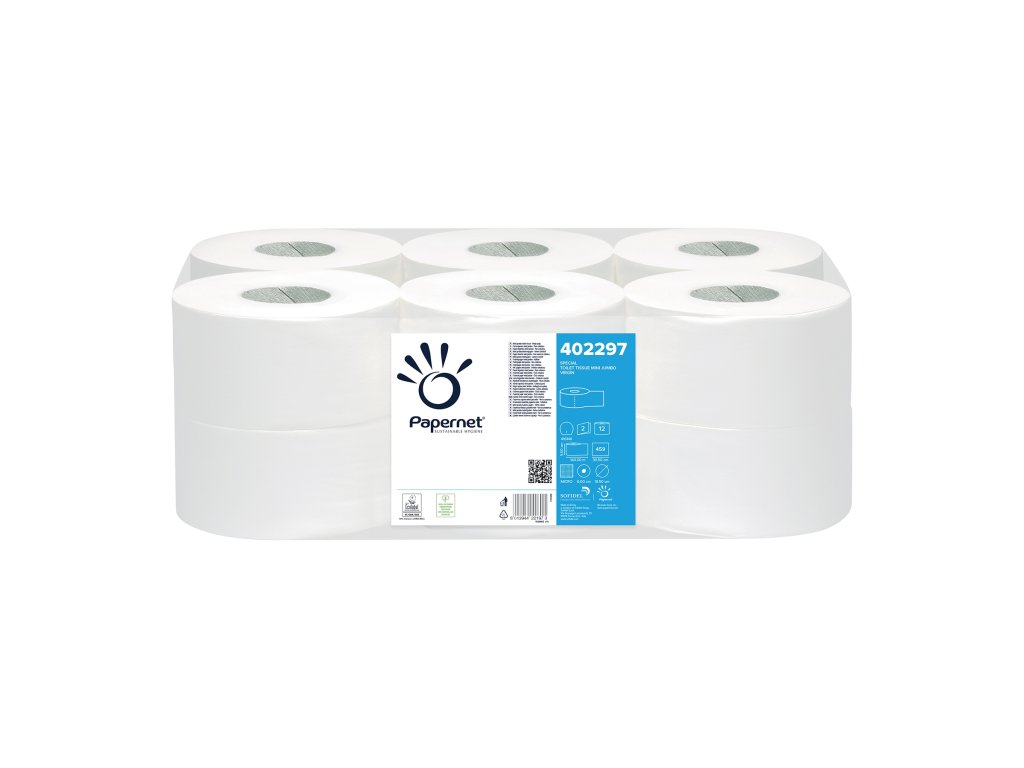 Papernet 402297 mini Jumbo 190, jemný toaletní papír, 2vrstvý bílý, balení 12 rolí, 140m, T2