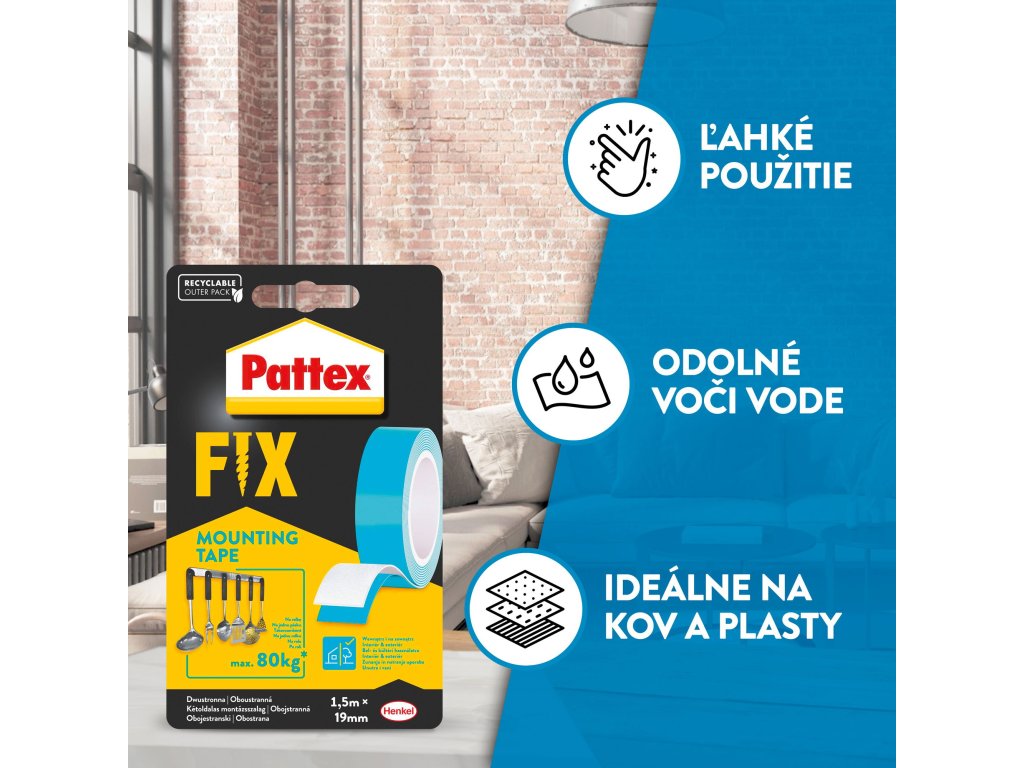 Pattex Fix 80 kg oboustranná lepící páska, 1,5 m x 19 mm